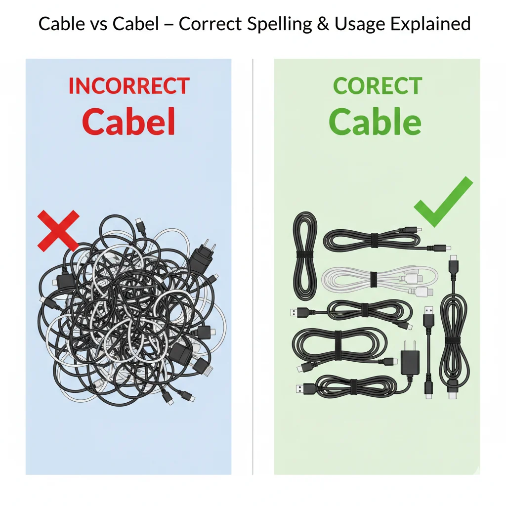 In this guide, we’ll explain the correct usage of “cable”, common mistakes, and simple tips to remember the right spelling every time. Say goodbye to confusion and write confidently with accurate, polished English.